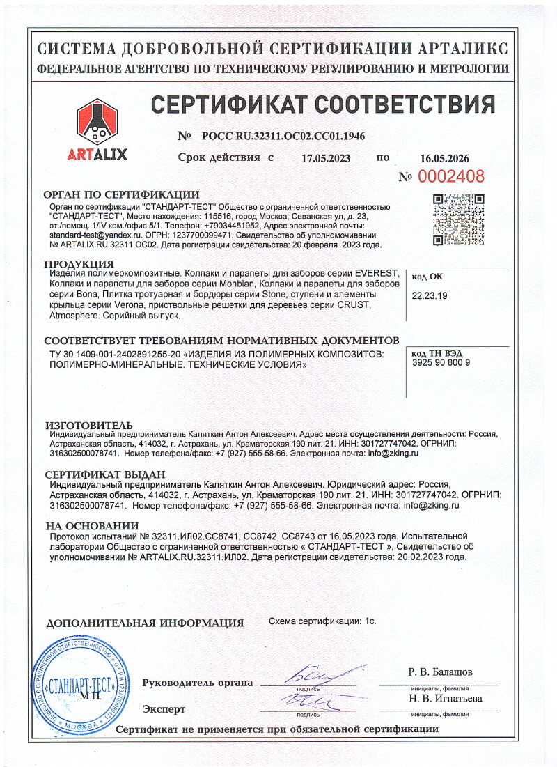 Сертификаты соответствия ZKING для Новошахтинска